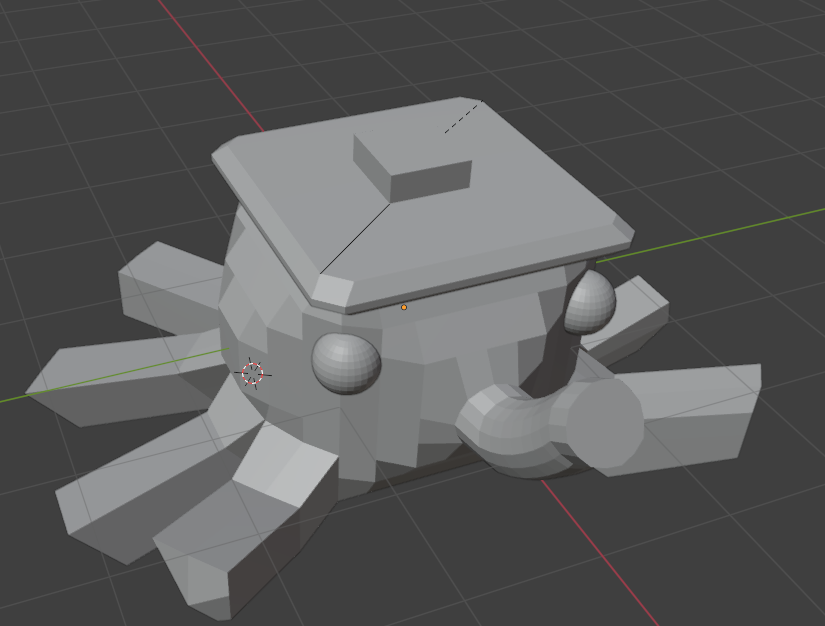 頑張って立方体をループカットで分割したり、面の押し出し、頂点の変更等などをしてこんな感じのモデルが出来ました。