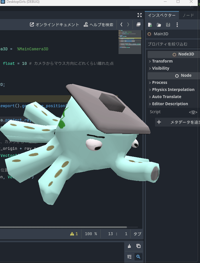 こちらはChara(Node3D)ノードについているものです。マウスをget_viewport().get_mouse_position()
